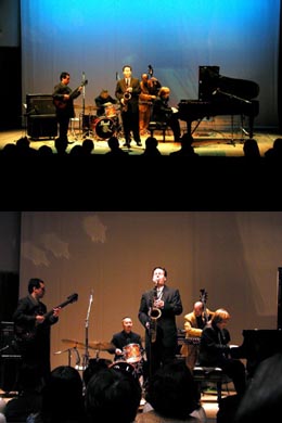 ツアー最終日は盛岡でした。 以前ハリーと来た時は「ペルソナ・ホール」だったのですが この「おでってホール」もまた素晴らしいホール! 演奏も燃えました!! 盛岡にはステージ写真を撮ってくれる 謎の(?)腕利きジャズマニアで 敏腕弁護士の吉田端彦先生という方がいらっしゃいます。 ・・・それでは盛岡での模様は、 その端彦チャンのショットの数々でお楽しみ頂きましょう!